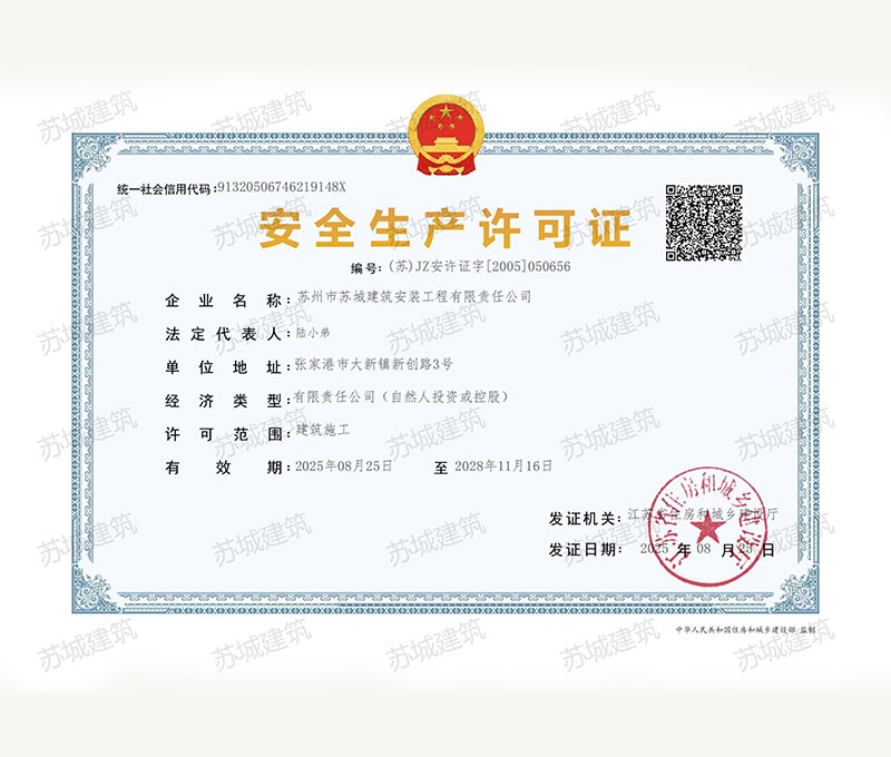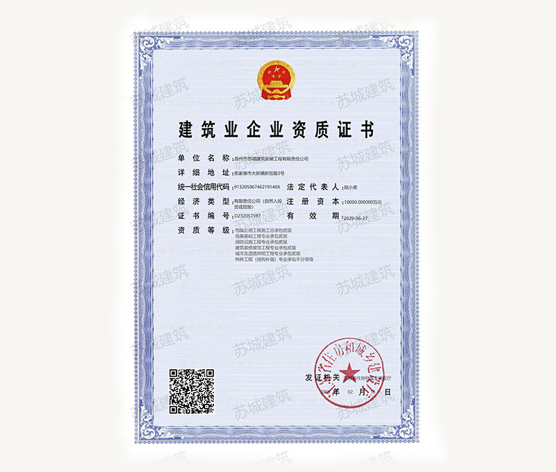 蘇州市蘇城建筑安裝工程有限責任公司,擁有主項建筑工程施工總承包一級資質,增項市政公用工程施工總承包二級資質和建筑裝修